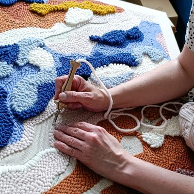 Abstrakcyjny obraz z wełny „Tkane formy”