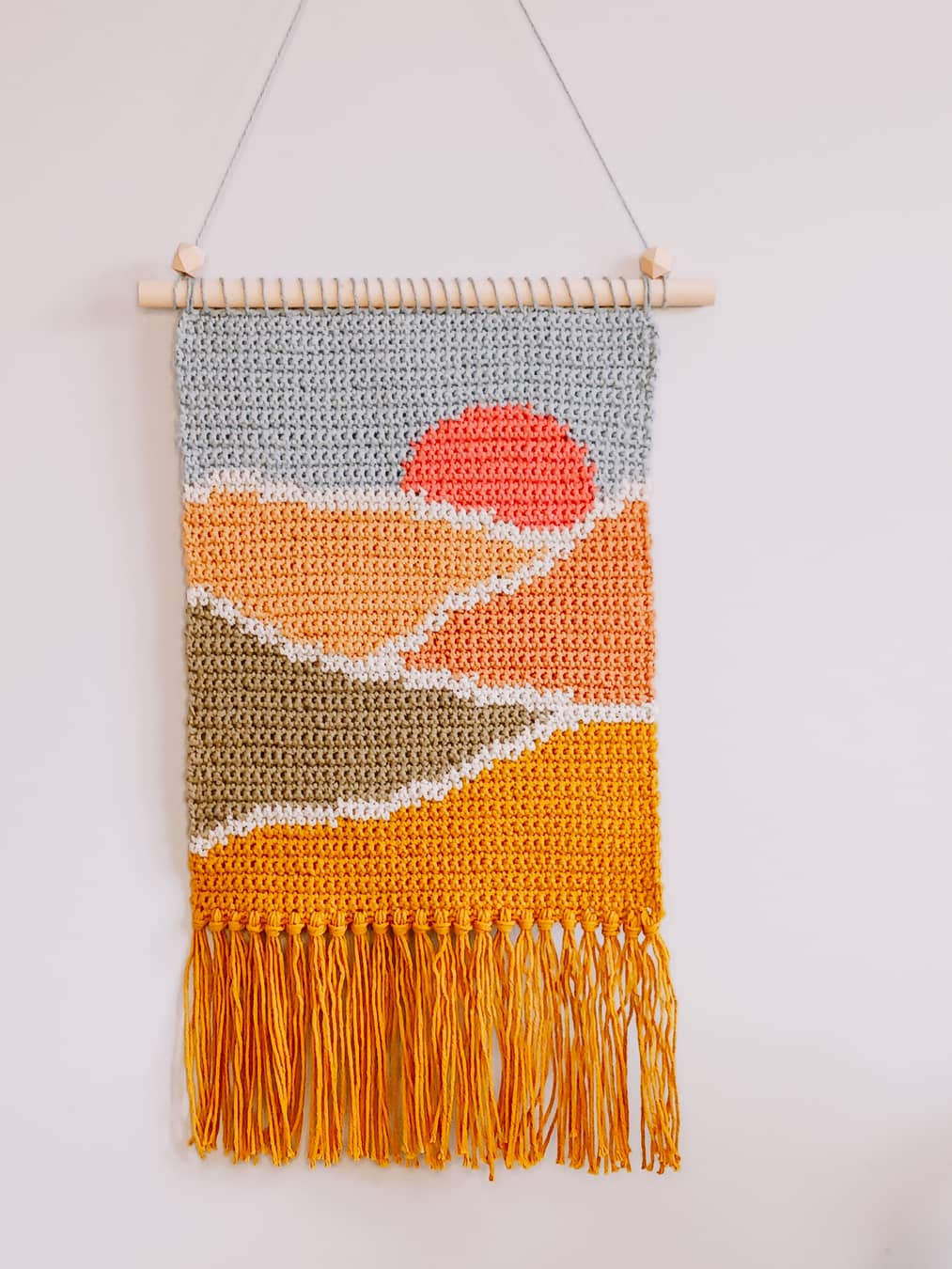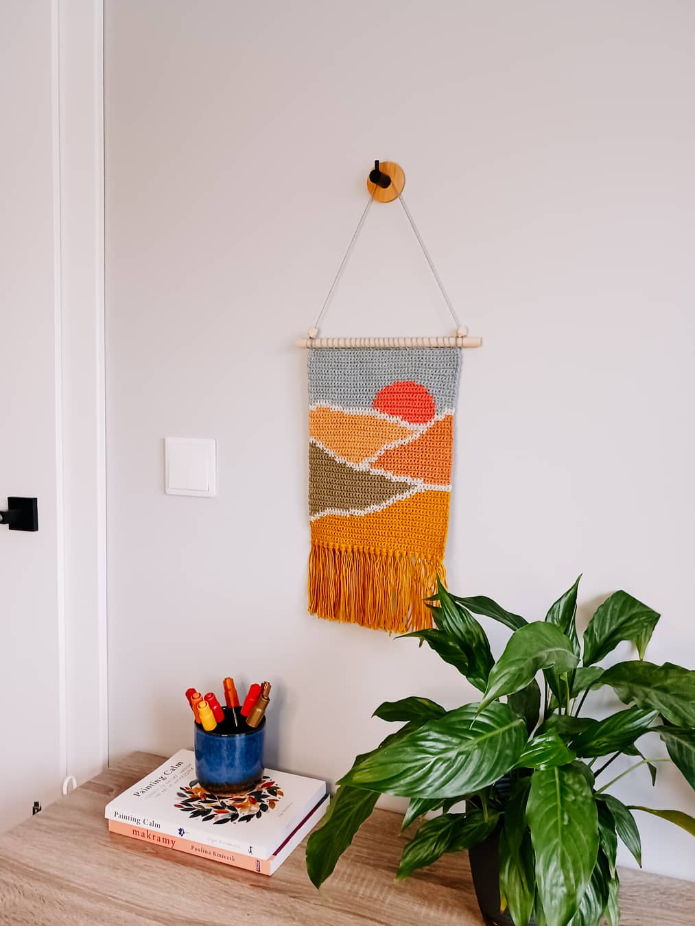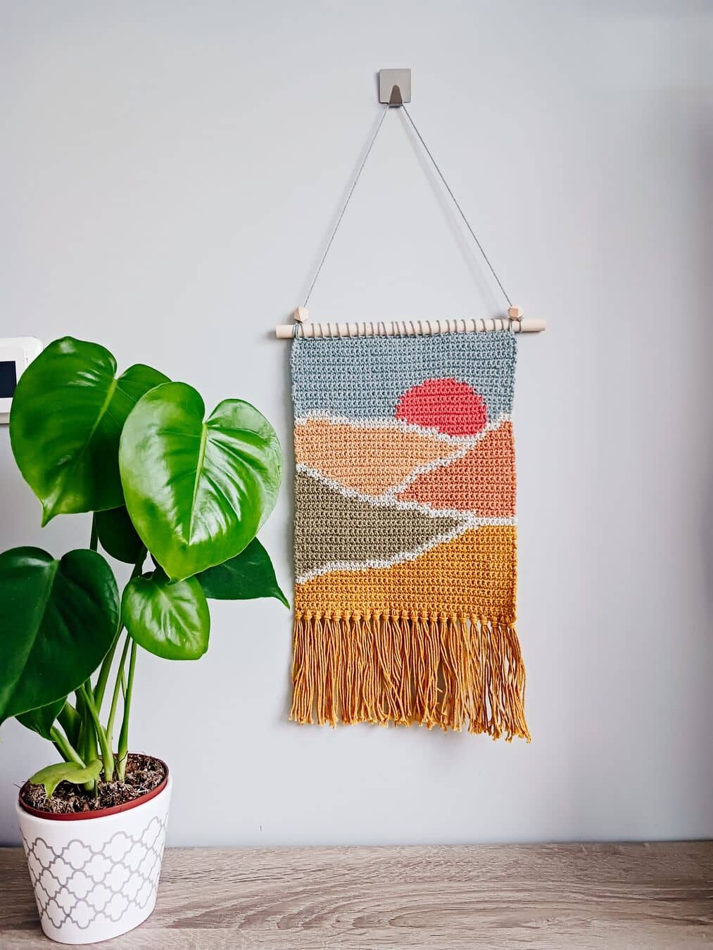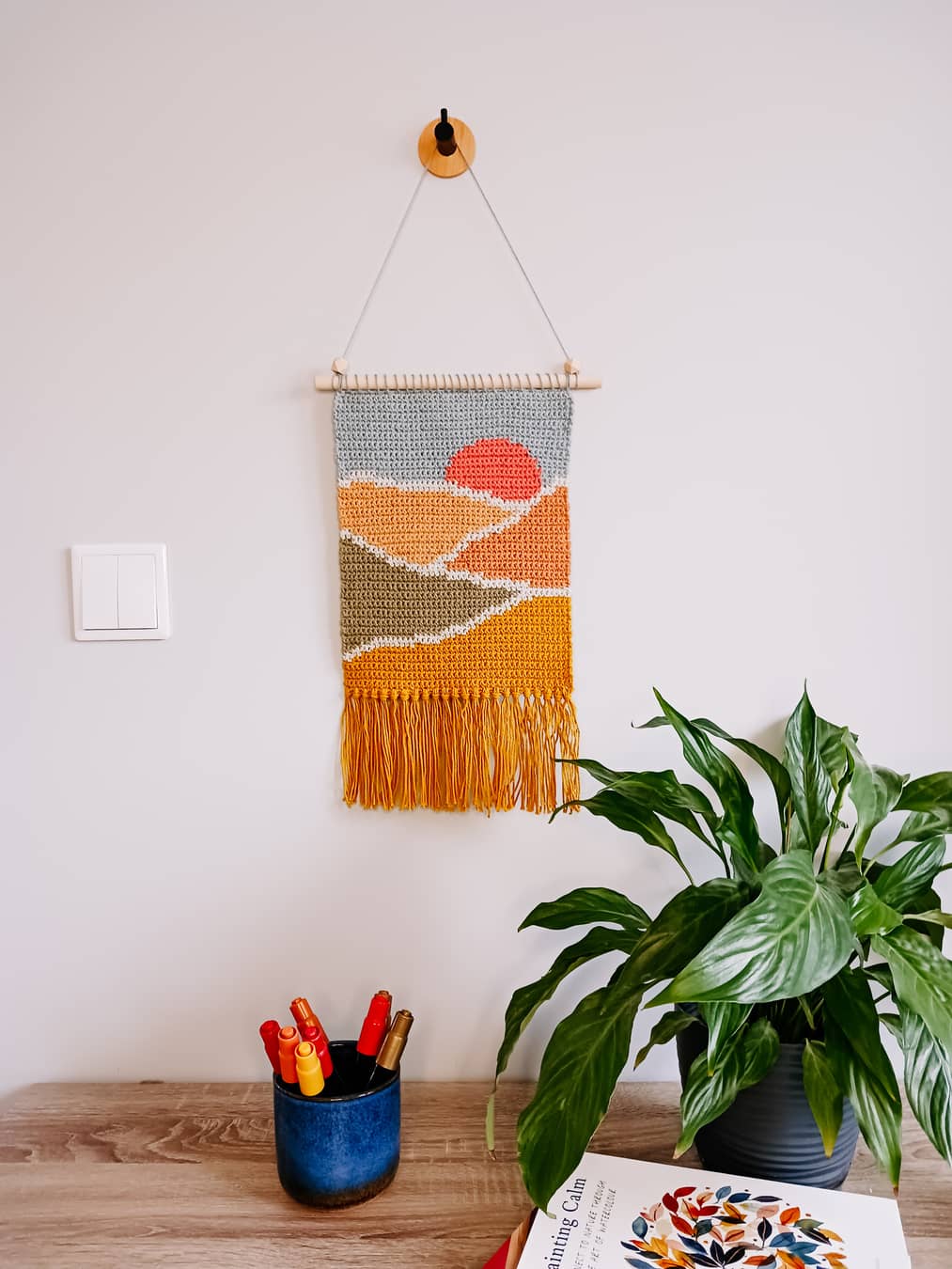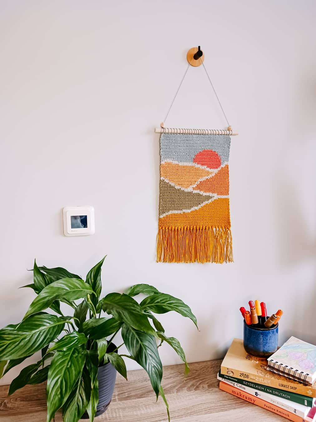Ta kolorowa dekoracja ścienna – makatka z romantycznym zachodem słońca to piękny akcent dekoracyjny do Twojego wnętrza. Wprowadzi do domu nostalgiczny nastrój, podkreśli Twoją wrażliwość na piękno przyrody i zamiłowanie do otaczania się przedmiotami wykonanymi ręcznie.