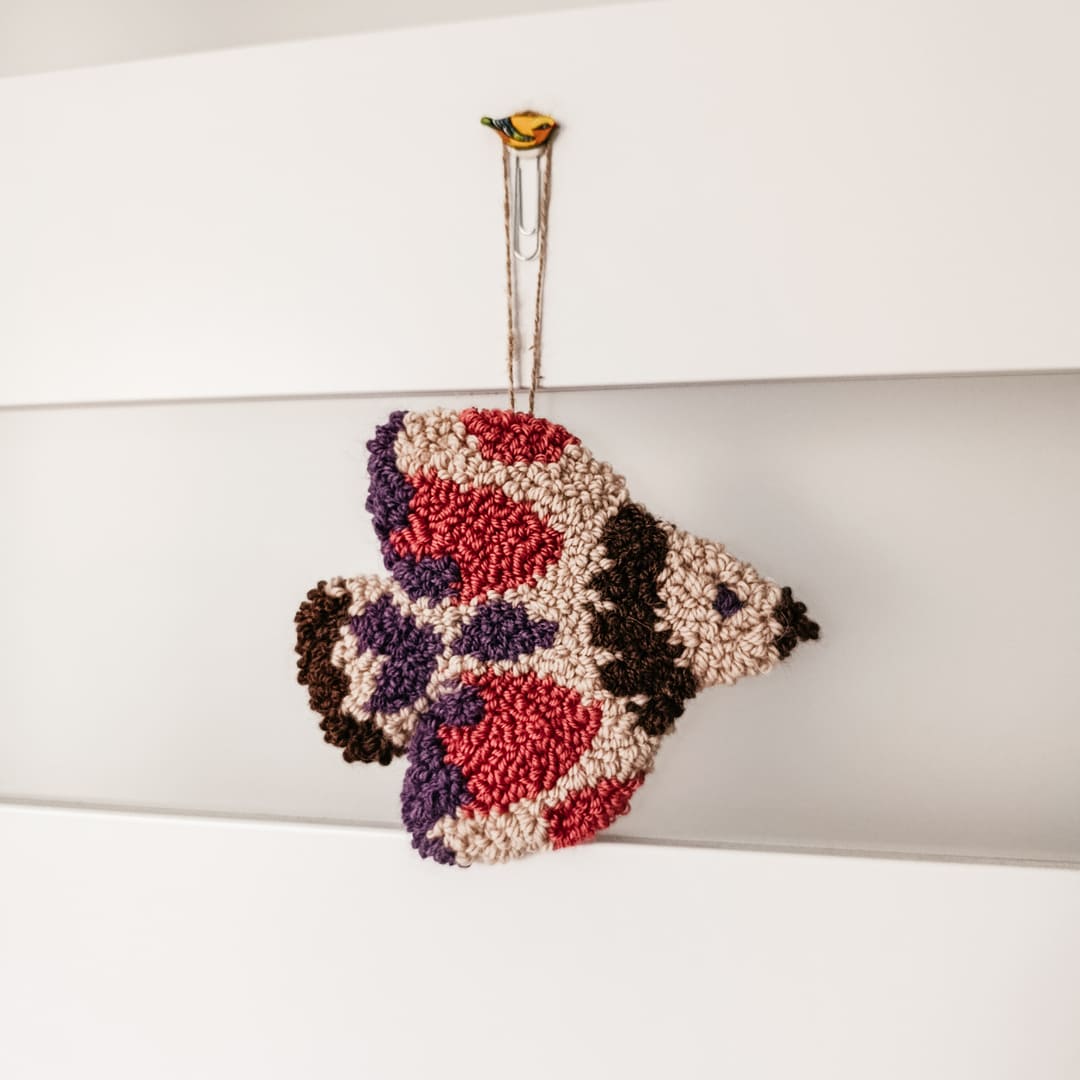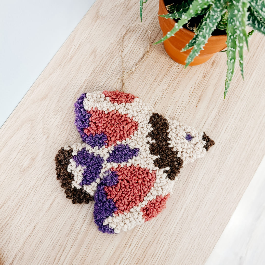 Miękka pastelowa zawieszka ścienna w kształcie ptaszka. Zrobiona została w technice punch needle z miękkiej, wełnianej włóczki. Tył wykończony filcem, co zapewnia estetyczny wygląd i trwałość.